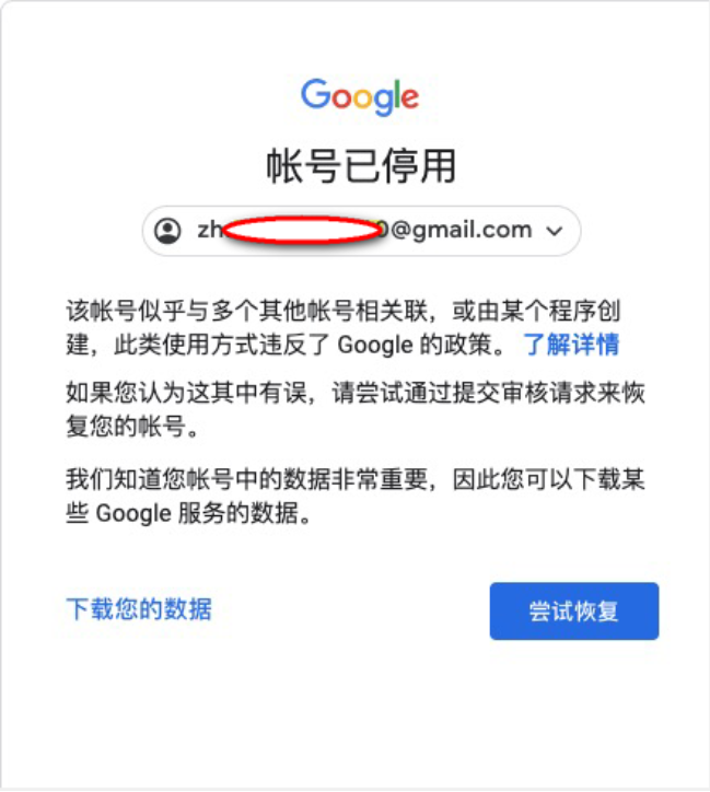 google账号已停用,此账号似乎违反了Google的政策,